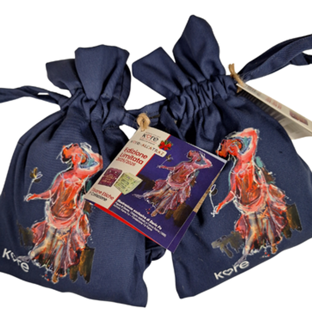 Per Natale abbiamo preparato alcuni pacchetti regalo, sia per privati che per aziende, cosi le persone che decideranno di sostenere Kore de Alcatraz approfittando di questa occasione, potranno fare regali “buoni sotto tutti i punti di vista”. Il nostro laboratorio produrrà dei magnifici sacchetti in edizione limitata, cuciti dalla sartoria sociale, e riempiti con amore con due miscele di tisane.